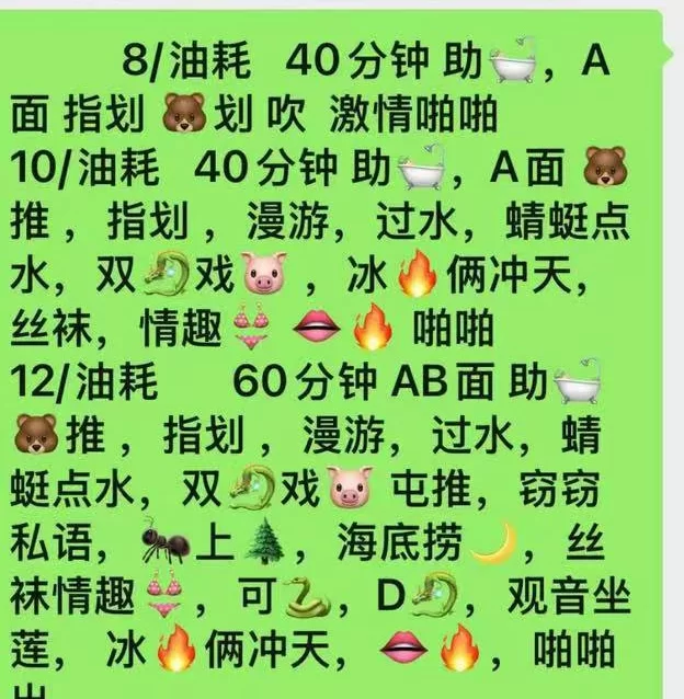 服务项目: 助浴 胸推 KH AB面 冰火 毒龙 大