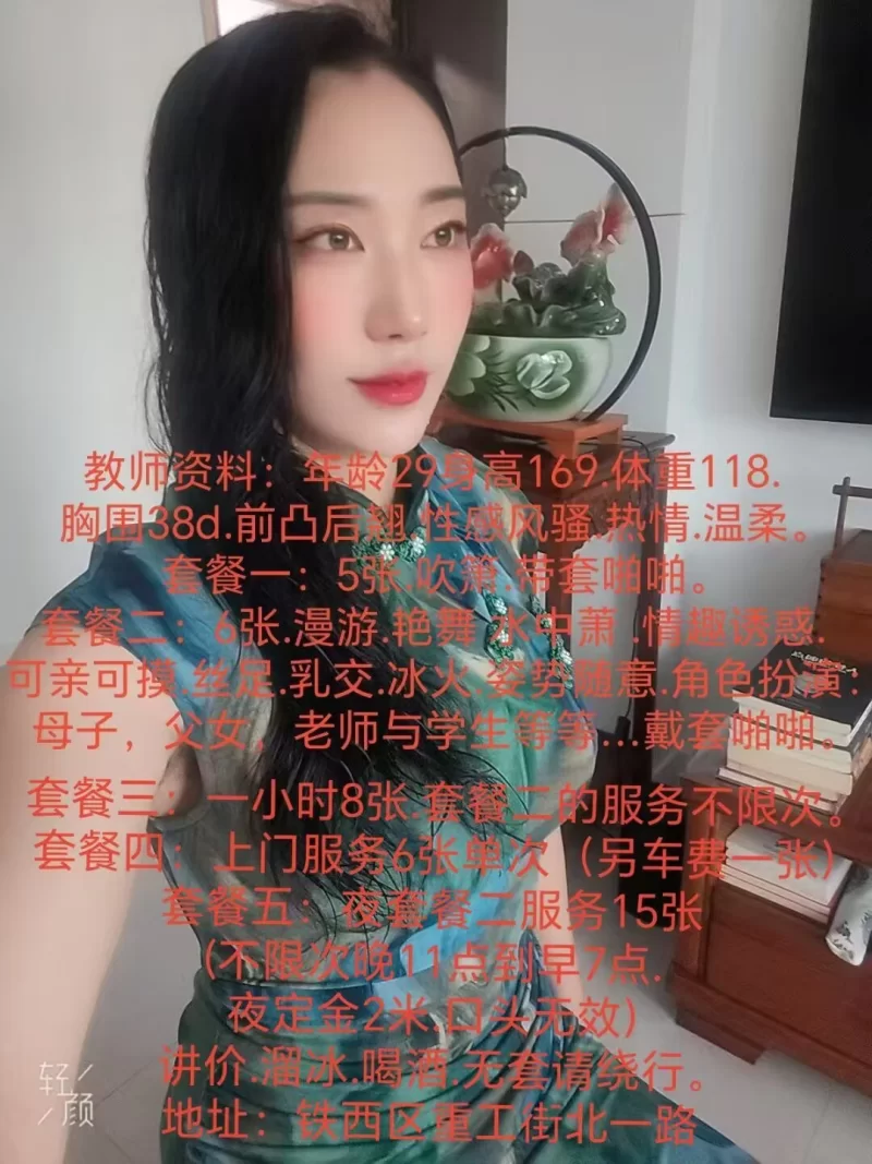立即登录姐姐在沈阳开课,但最近打算去北京一段时间,加好友后还请问问目前在哪里,方便联系,个人感觉姐姐比照片还要好看!第一眼给我一种良家少妇的清纯感,但是又特别性感风骚,而且特别温柔!热情健谈!不冷场,床上更是让我欲罢不能!连续两次后抱着一起睡,第二天早上走之前又做了一次,真的舍不得离开!情趣套装外加角色扮演,师生母子都试过极为刺激!姐姐下面水多滑溜,而且特别热!带套后各种姿势不催配合,体验感满满!总让我想把姐姐娶回家!可亲可摸,但是姐姐相当干净,不允许舔摸下面粉嫩小蝴蝶,更不能无套,特别注重安全问题,床单每天清洗更换,胸大屁股翘,属于那种又骚又欲让人流连忘返!大家感兴趣可以看看课表,姐姐很小心,如果联系方式加不上可以多试一下,姐姐还有电报群和与你,这里就不放了